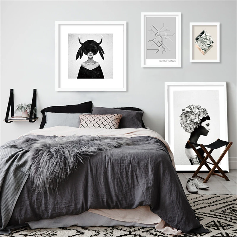 . Des idées de couleurs dans la chambre | Leroy Merlin Relooking déco chambre en noir et blanc - Côté Maison M53 noir blanc Portrait ins peinture affiche moderne peinture décorative, sans cadre mur peinture chambre décoration, décoration de la maison art | AliExpress